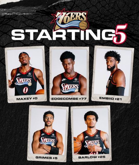 恩比德與馬克西領(lǐng)銜76人首發(fā)五人組,喬治在背靠背第一場(chǎng)輪休缺席,烏布雷與沃特福德繼續(xù)因傷缺席。